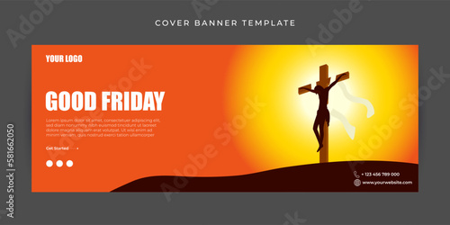 Easter Sunday greeting card with Good Friday symbols. Celebrate resurrection, concept for church web banner or holiday flyer. Vector illustration
