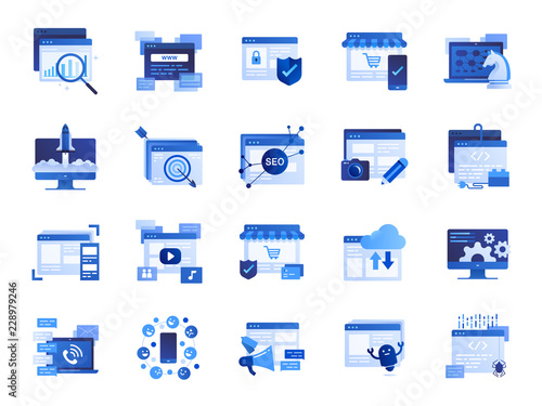 Website icon set. Contain icons related to Containing web design, internet, content, SEO, hosting,  blog, homepage, e-commerce, and more. Outline Icon Collection. Editable stroke. Vector illustration