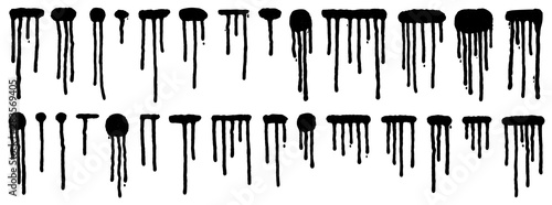 Paint drip. Splatter set. Grunge stains. Water flow. Ink splash. Liquid dripping collection. Spray. Acrylic. Dirty spot. Scribbles.