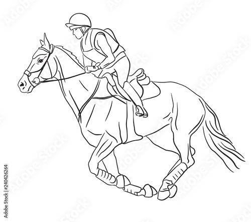 Jockey on Horse High Jump Vector Illustration - Cartoon Clipart Line Art