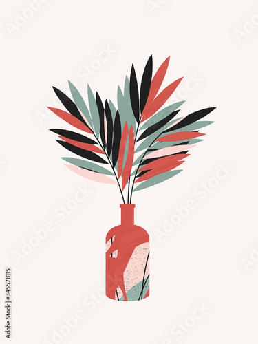 Abstract still life painting of colorful vases and bottle on shelf modern art home decor illustration
