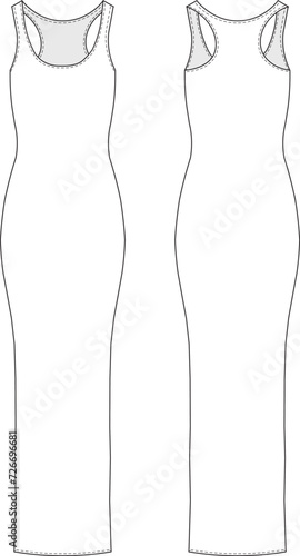 sleeveless shoulder straps strapped strappy u scoop neck a line fit and flared maxi long dress template technical drawing flat sketch cad mockup fashion woman design style model