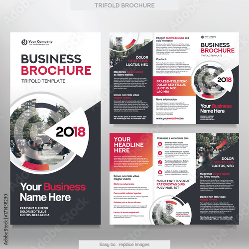 Business Brochure Template in Tri Fold Layout. Corporate Design Leaflet with replacable image.