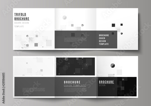 Vector layout of square covers templates for trifold brochure, flyer, magazine, cover design, book design, cover. Abstract 3d digital backgrounds for futuristic minimal technology concept design.