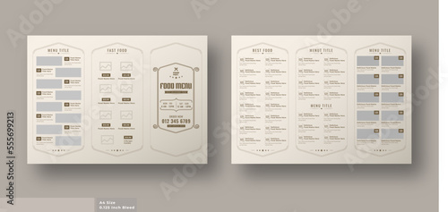 Food trifold brochure menu template. vintage fast food menu brochure for restaurant with blue and  yellow color