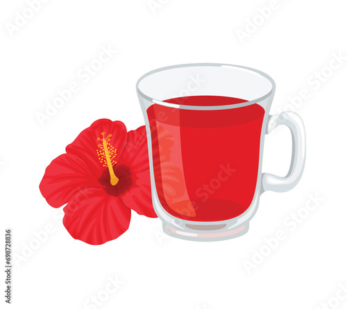 Tea glass cup with tea bag and green tea. Hot drink in vector cartoon flat style. Isolated on white background. Perfect for beverage, cafe, relaxation, and healthy lifestyle designs