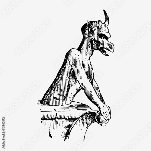 Fallen angel engraving. Gothic sorrow in stylized etching.
