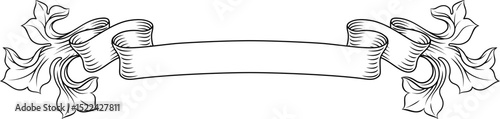 A scroll banner ribbon or paper parchment illustration in a vintage engraved etching style