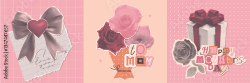 Set of  birthday greeting cards design with cake, balloons and typography design. Abstract universal grunge artistic templates. For poster, business card, invitation, flyer, banner, email header