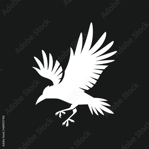 A digitally drawn black crow with outstretched wings facing forward on a white background plain style