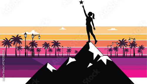 Chasing Aspirations: A determined individual strides forward, reaching for a shining star that embodies dreams, ambition, and the pursuit of goals.