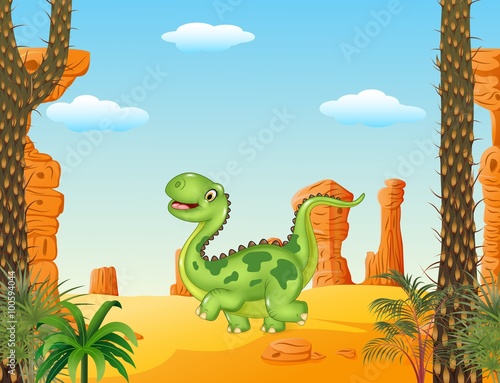 Dinosaurs walking vector illustration, prehistoric age landscape