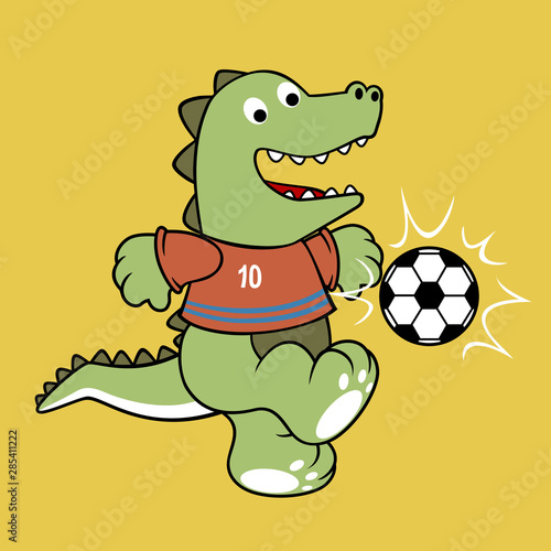 Cute dino traveling in truck. Fun dinosaur driving a truck. Vector for baby fashion print. Vector illustration.