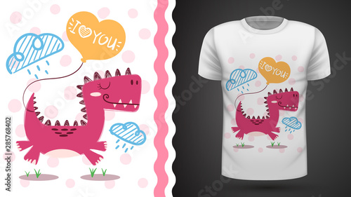 Dinosaur baby girl cute print. Sweet dino princess with crown. Cool stegosaurus illustration