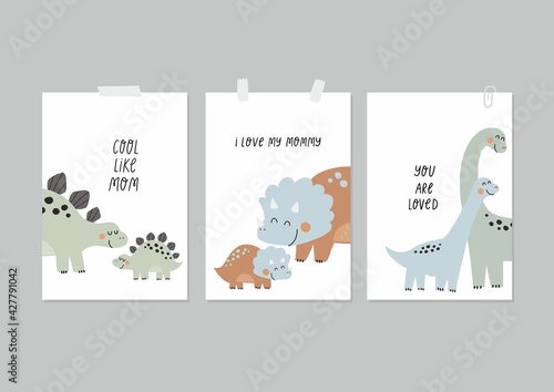 set of cute dinosaur print and seamless pattern with dinosaurs. vector illustration