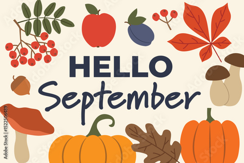 Autumn forest elements: mushrooms, leaves, and woodland animals in flat design