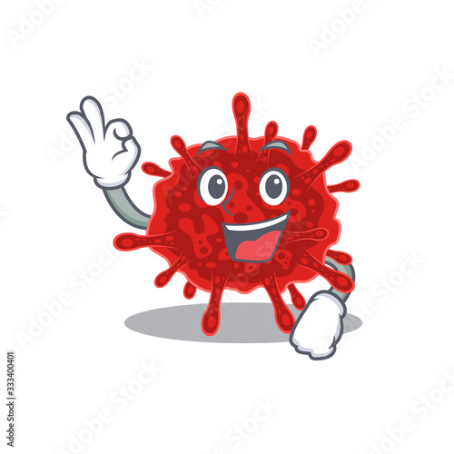 buldecovirus cartoon character design style making an Okay gesture