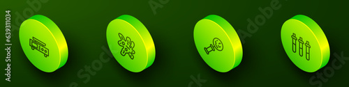 Set Isometric line Electronic scales, Cell, Microorganisms under magnifier and Reagent bottle icon. Vector
