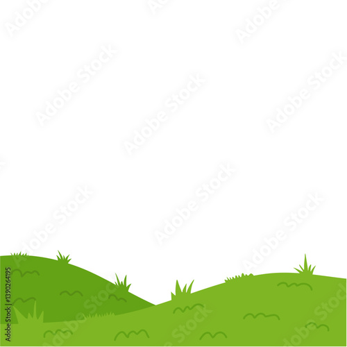 Watercolor green field landscape on small hill. Meadow grass, nature, pasturage, farm. Rural scenery landscape panorama of countryside pastures. Vector