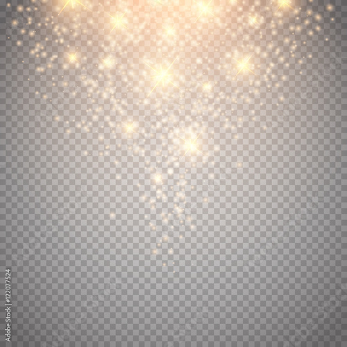 Christmas light effect. Sparkling magical dust particles.The dust sparks and golden stars shine with special light.