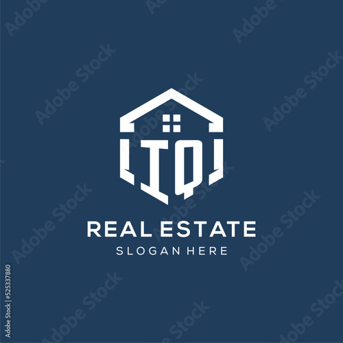 Initial IQ logo template with modern frame. Minimalist IQ letter logo vector illustration