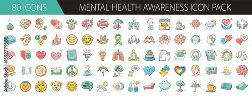 Mental Health & Psychology Icon Set, Professional Illustrations for Therapy, Wellness, and Emotional Awareness Projects.