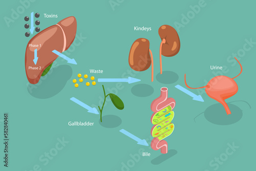 3D Isometric Flat Vector Conceptual Illustration of Liver Detoxification, Educational Labeled Description