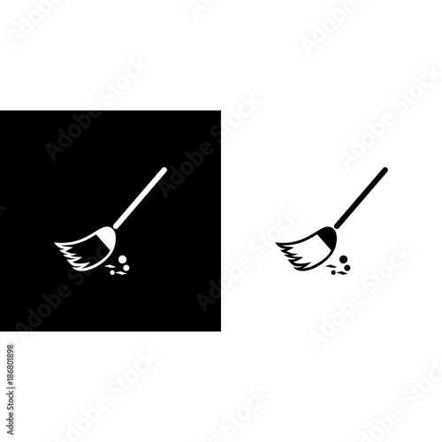 Broom mop sweep cartoon flat icon. Clean tidy dust cleanup vector symbol