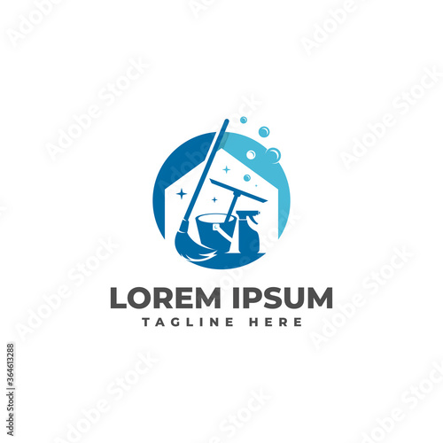 Cleaning Service Logo Vector Design Template.Combination Of Bucket With Floor Cleaner In Design. Creative Cleaning Logo Template.