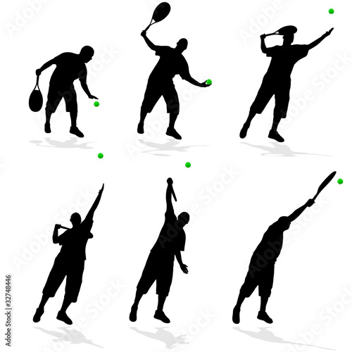 Tenis player, isolated vector silhouette, ink drawing. Individual sport