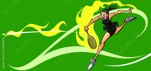 Tennis player. Woman athlete playing tenis, court game, sport. Girl character hitting ball with racket, exercising, training, workout. Flat graphic vector illustration isolated on white background