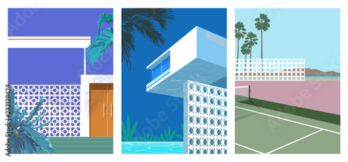 Illustration of different tennis courts, playing field for different sports set of tennis courts in different colors vector graphics eps10