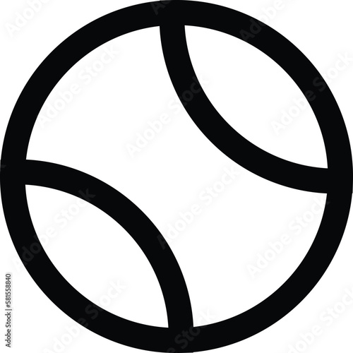 tennis ball with white curved lines, representing a sports equipment symbol for tennis games, tennis ball vector icon.