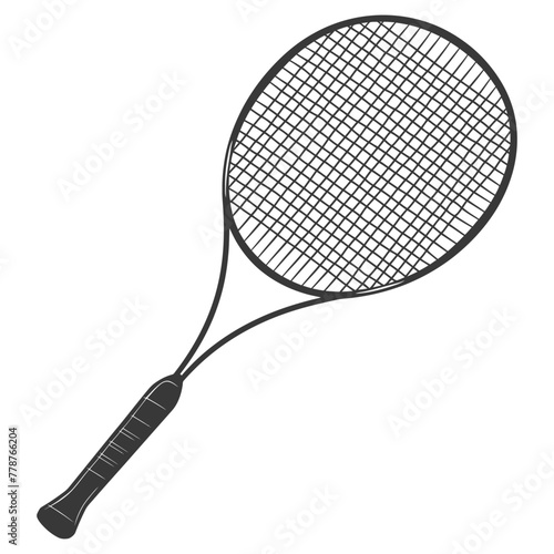 This logo creatively incorporates a tennis racket, highlighting its significance in sports branding, A simple logo incorporating a tennis racket, minimalist simple modern vector logo design