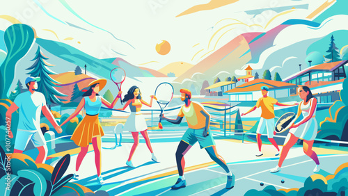 Vibrant Summer Tennis Match at Picturesque Mountain Resort