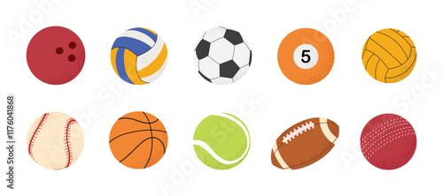 Set of balls for different sports. Balls for soccer, basketball, volleyball, rugby, tennis, bowling. Isolated vector ball in flat style.