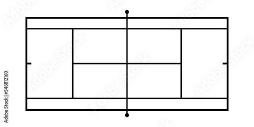 Tennis court top view. Game field. Black tennis court isolated on white background. Vector illustration. The exact proportions