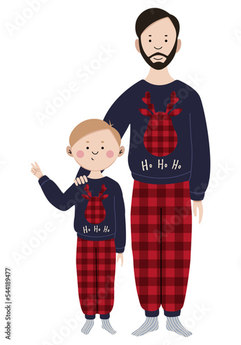 Young caucasian child in festive pajamas holding gift box for christmas - stock vector