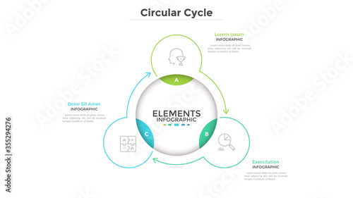 CAR interview model infographic concept for slide presentation with big circle blending connection with 3 point list with flat style