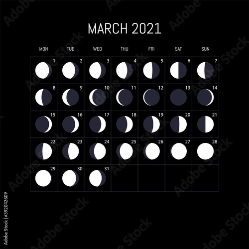 Moon phase illustration. Vector image of a new moon, full moon, waning moon