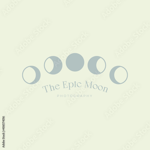 Moon Phases Logos. Moon phases. Icon set. Set Logo of moon phases: ocean tide wave paired with lunar phase row. harmonious logo variations of the