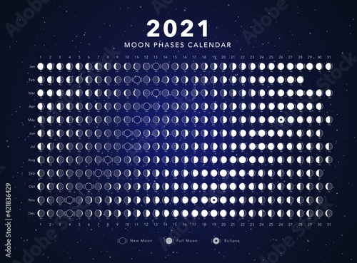 2020 moon phases calendar blue astronomy vector chart