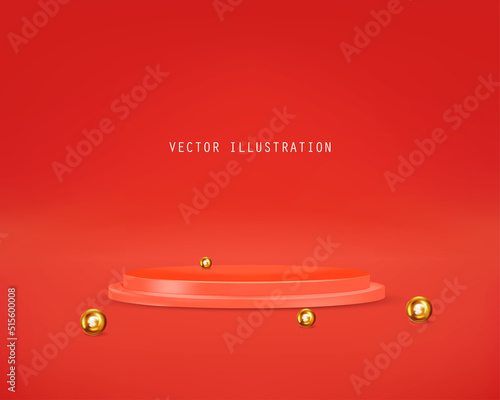 Valentine's podium clipart template design. Happy valentine's day greeting card with red podium stage in flowers and speech bubble background for product presentation clip art. Vector illustration.