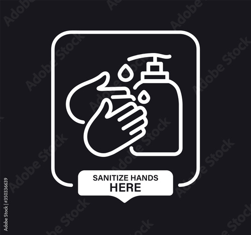 Line art illustration of a hand sanitizer pump bottle for hygiene