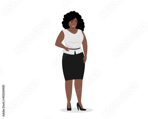 Female silhouette on a white background. Young girl with fiery forms posing. Vector stock illustration of a confident woman without complexes isolated.
