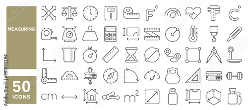 Measurement related line icons set. Editable Stroke