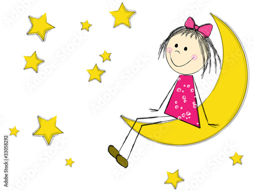 Cute cartoon little kid girl in various expressions and gesture. Cartoon child character showing different emotions. Vector illustration