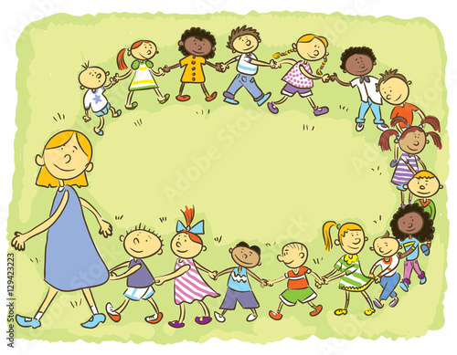 Genius Child Teacher Teaching Students , Vector Cartoon Stick Figure Illustration