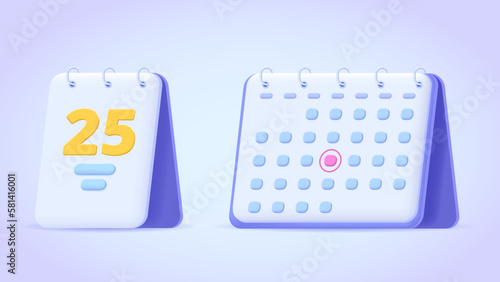 Set of three dimensional style icons representing task management, scheduling, time, and refresh functions for web and mobile interfaces