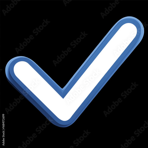 Illustration of a hand drawn check mark with hatching and a three dimensional effect on a white background